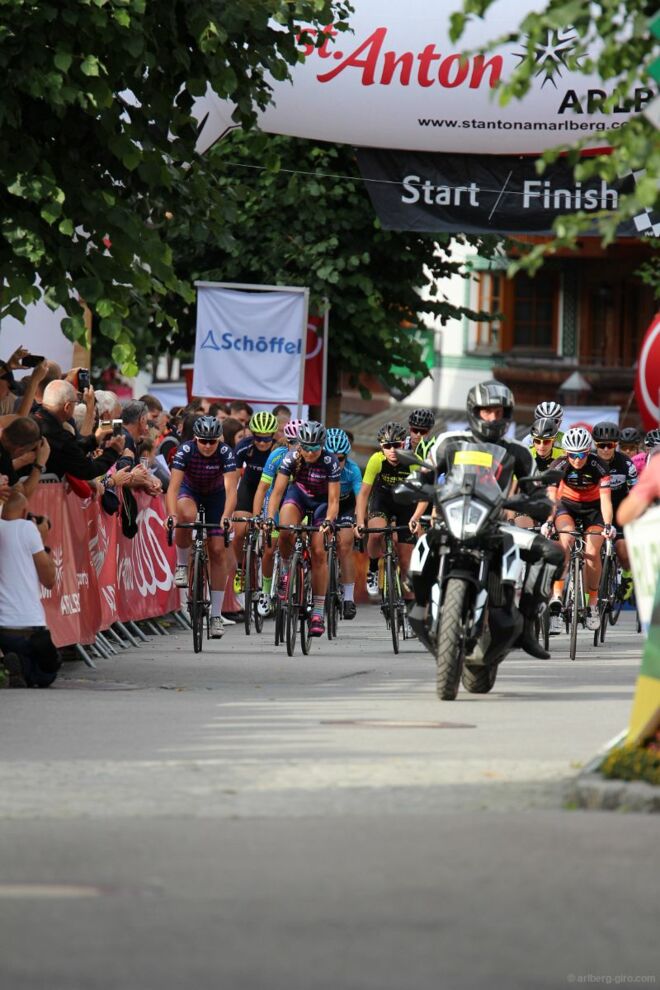 Einen Tag vor dem ARLBERG Giro läutete das Profi Kriterium am Samstag, den 3. August 2019, das radsportliche Wochenende in St. Anton am Arlberg ein. 48 Spitzenfahrer und -fahrerinnen jagten mit Höchsttempo durch die engen Gassen des Tourismusortes und lieferten den Zusehern entlang der Strecke einen rasanten Wettkampf. Bei sonnigem Wetter starteten um 18 Uhr die Damen in den herausfordernden Rundkurs. „Der Frauen-Rennsport erfreut sich zunehmender Beliebtheit. Das Starterfeld beim Kriterium wird von Jahr zu Jahr internationaler und größer“, so Martin Ebster, Direktor vom Tourismusverband St. Anton am Arlberg. 22 Athletinnen fighteten in nächster Nähe zum Publikum auf 16 Runden um den Sieg. Die Deutsche Beate Zanner, die in den letzten beiden Jahren die Bundesliga als Gesamtsiegerin absolvierte, konnte sich gegen ihre Kontrahentinnen durchsetzen und den ersten Platz für sich entscheiden. Als zweitschnellste Frau überquerte die Österreicherin Sylvia Gehnböck die Ziellinie. Die Lokalmatadorin Daniela Traxl-Pintarelli durfte sich nach einjähriger Babypause über den erfolgreichen dritten Platz freuen.