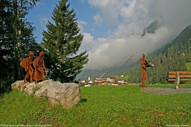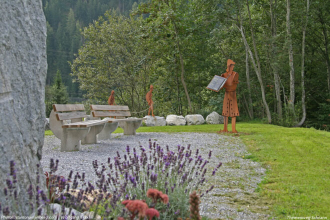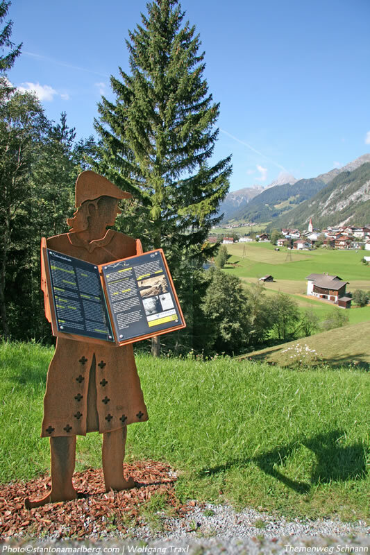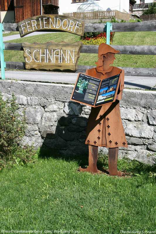 An 13 Stationen gibt es zu jedem Thema eine lebensgroße Figur aus Cortenstahl, die ein großes Buch in den Händen hält. Dort wird zum jeweiligen Thema in Text und Bild berichtet. Die Besucher erfahren viel über die Entstehung und Geschichte der Pfarre und Pfarrkirche Schnann sowie die Besiedlung des Ortes. Mehr dazu finden Sie auf der folgenden Webseite themenwegschnann.at.