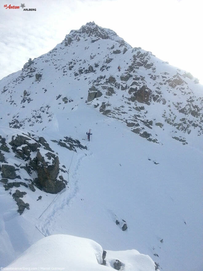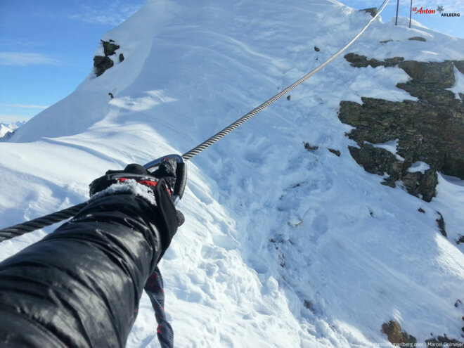 Der Klettersteig, der für Tourengehende mittlerer Kondition geeignet ist, ist mit einem Stahlseil versehen. Etwa 20 Prozent müssen direkt am Fels geklettert werden, der Rest der Strecke ist normales Gehen. Wer sich nach Neuschnee als erster auf den Weg macht, auf den kommen noch die Strapazen des Spurens zu. Aber man geht auch viel auf Schneewechten, so dass man nicht immer einen halben Meter tief einsinkt. Doch die Strapazen lohnen sich. Am Ende des Klettersteigs warten herrliche Skiabfahrten. Es wird empfohlen, mit Guides der örtlichen Skischulen zu touren.