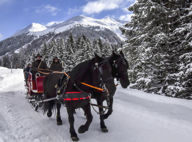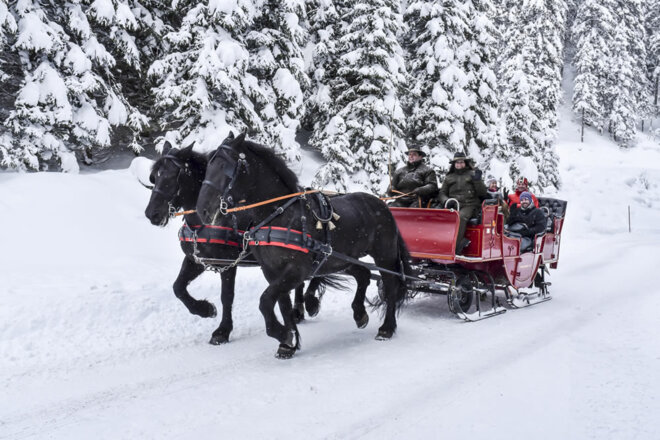 Es werden auch Fahrten auf anderen Routen, wie zum Beispiel rund um den Ort angeboten. Abseits von Hektik und Stress lässt sich St. Anton am Arlberg im Pferdeschlitten neu entdecken.