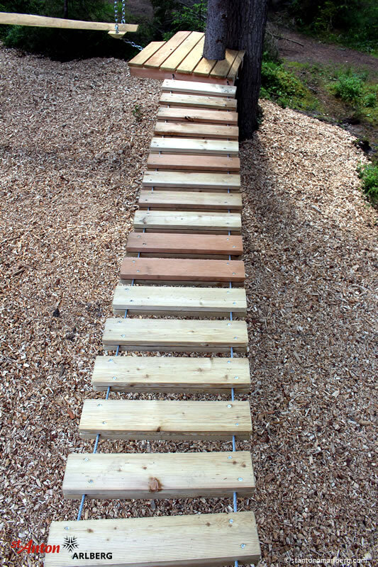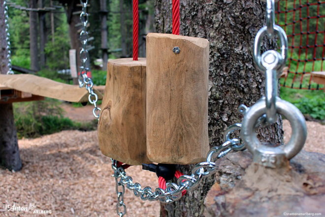 The route runs over eight stations, demanding a certain degree of coordination from climbers. Initial training includes balancing on tree trunks and walking along rope ladders. Towards the end of the circuit, there are even more tricky tasks such as making your way hand over hand along a rope using rope slings. Particularly clever: a section with freely hanging stirrups high up in the air at the end of the circuit.